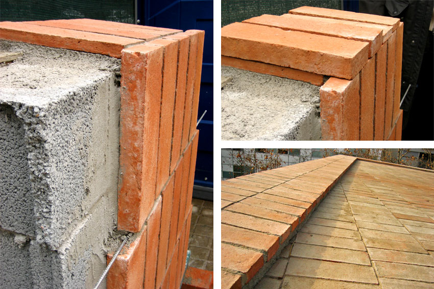 10El espesor de las rasillas de cubierta es de 2 cm, y el espesor de las rasillas de fachada es de 4 cm. Las rasillas están fijadas con mortero. En fachada ciertas hiladas están armadas para evitar movimientos y caída de piezas.