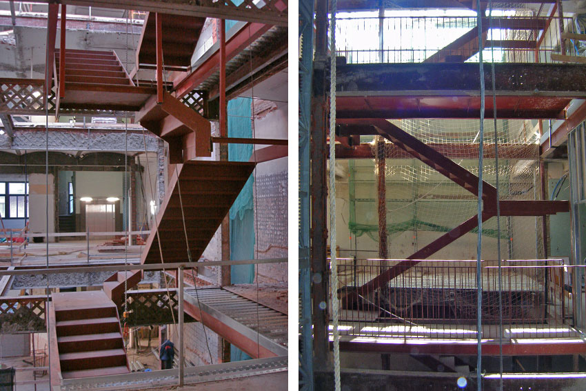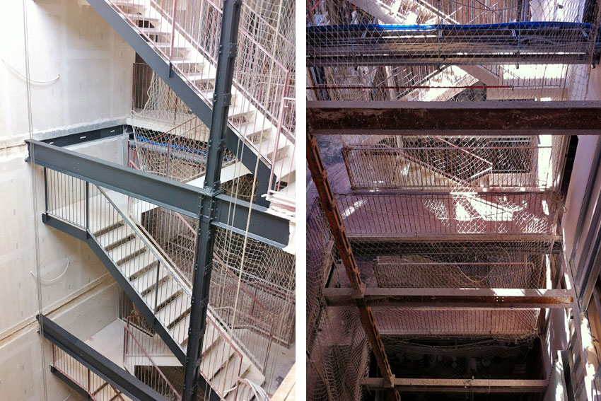 Vista del desarrollo de la escalera. Las pasarelas están realizadas mediante forjados colaborantes.